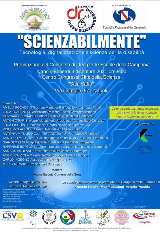 “Scienzabilmente 2021” è stato organizzato da Rainbow - Diversamente RADIO TV, per sensibilizzare le giovani generazioni sull’importanza della ricerca scientifica e tecnologica, della digitalizzazione e delle metodologie per l'inclusione in tema di disabilità.