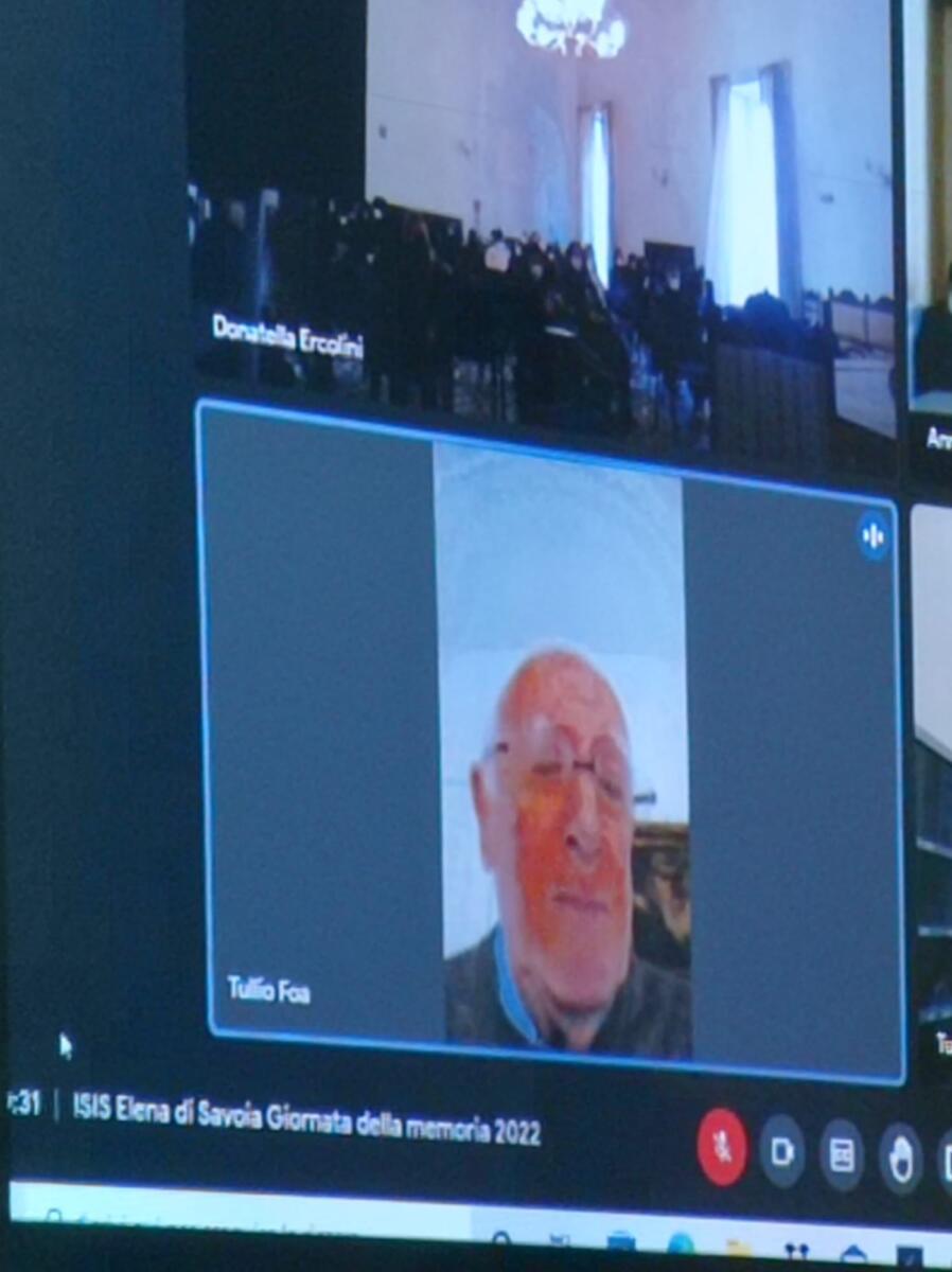 L’incontro, che si è svolto online in collegamento tra lo studio di Tullio Foà e le Aula Magna delle due sedi della nostra scuola: Elena di Savoia e Diaz, è stato particolarmente emozionante e coinvolgente per i nostri alunni, una bella occasione affinché anche i più giovani sappiano e non dimentichino ciò che è accaduto in periodo storico tanto distante dal loro.