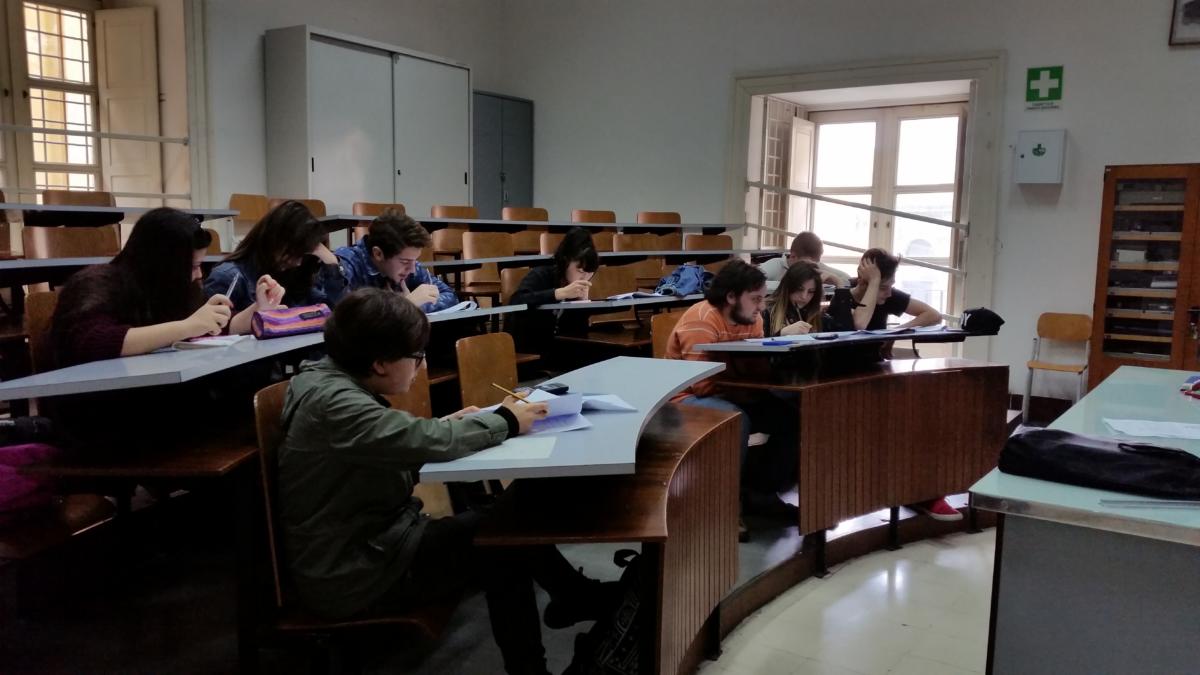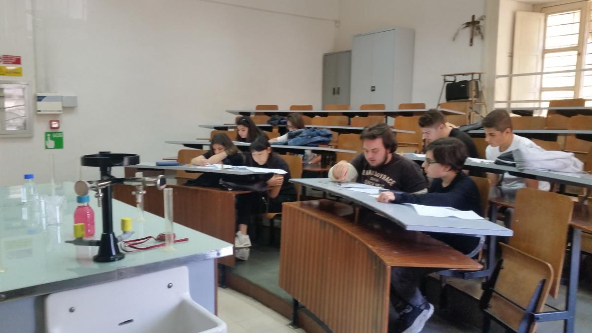 I nostri alunni nel Laboratorio di Fisica dell'Elena di Savoia alle prese con i Giochi di Anacleto promossi dall'AIF - Associazione per l'Insegnamento della Fisica.