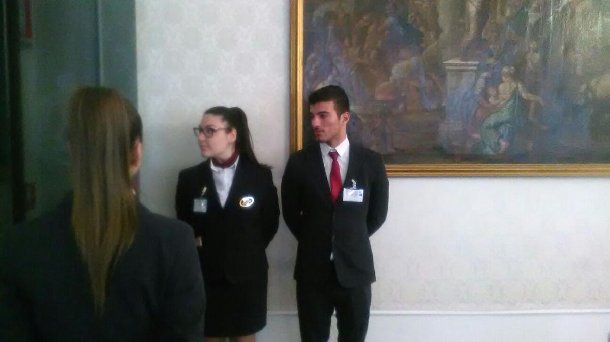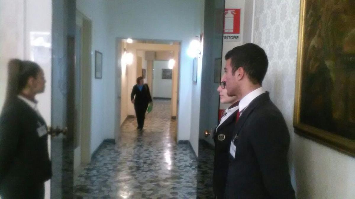 I ragazzi della 4aA Accoglienza Turistica e 4aB Sala in Alternanza Scuola-Lavoro alla "Riunione di Primavera OTOSUB" presso il Circolo Ufficiali della Marina Militare. Il convegno medico scientifico è un prezioso momento di incontro e confronto tra i vari specialisti ed esperti nel settore della medicina subacquea e iperbarica.