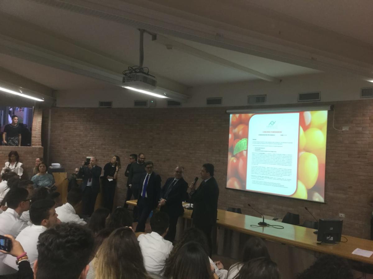 presentato dagli alunni della 5aA Enogastronomia dell'a.s. 2017/18. Il concorso, tenutosi lo scorso anno presso Città della Scienza di Bagnoli, è stato realizzato in collaborazione con l'Ufficio Scolastico Regionale per la Campania, ANICAV (Associazione Nazionale Industriali Conserve Alimentari Vegetali) e g.n.a.m. Village.