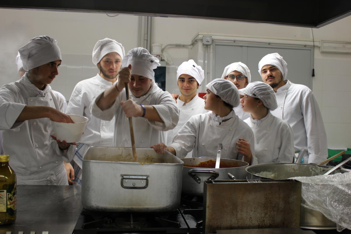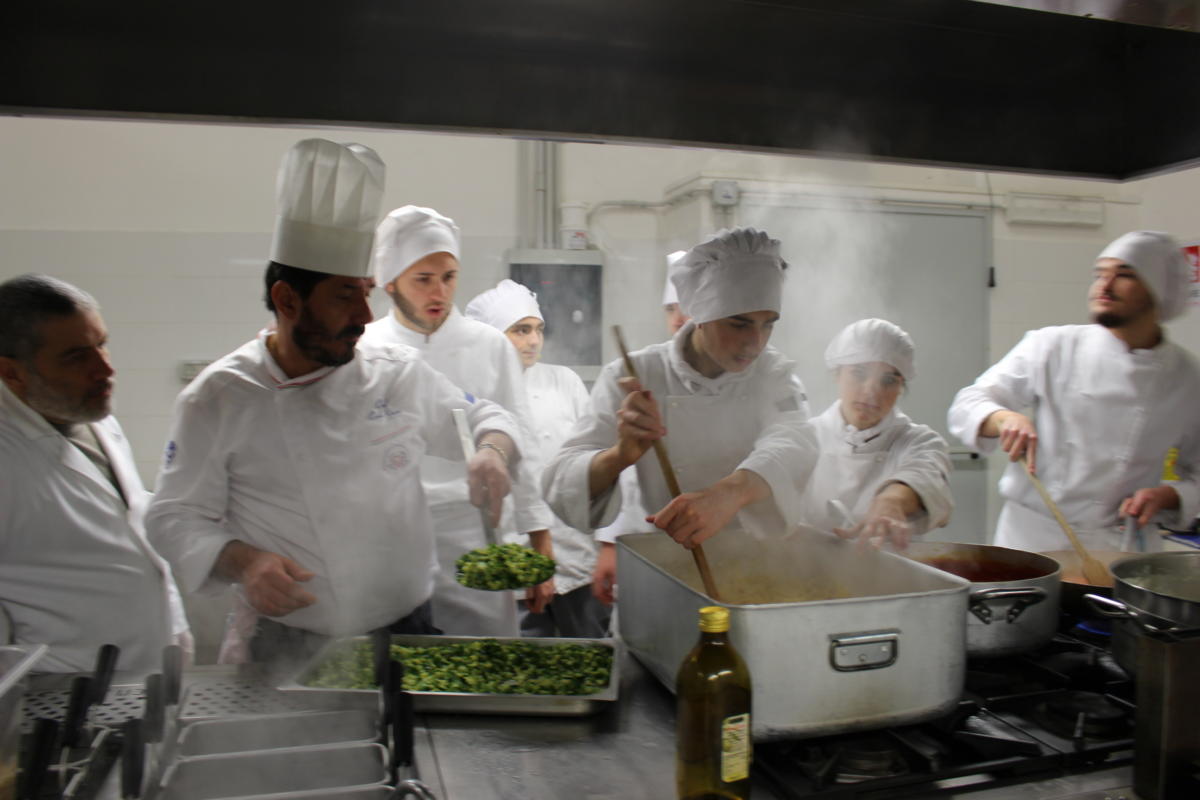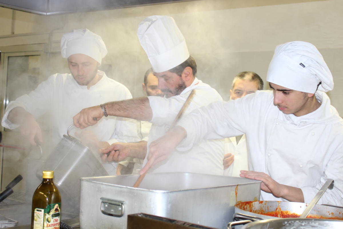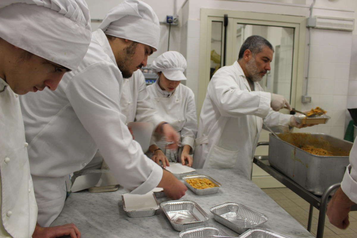 I bravissimi ragazzi della 3aB del Professionale Alberghiero indirizzo “Enogastronomia” al lavoro per la preparazione dei pasti destinati alla Mensa della Comunità che accoglie ogni giorno le persone meno fortunate.