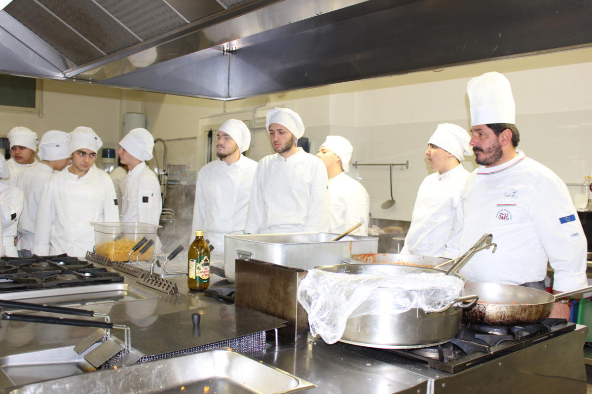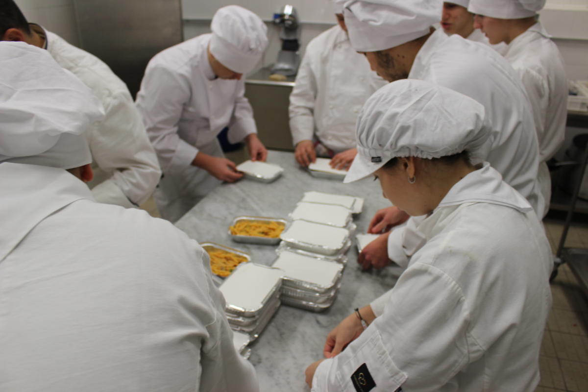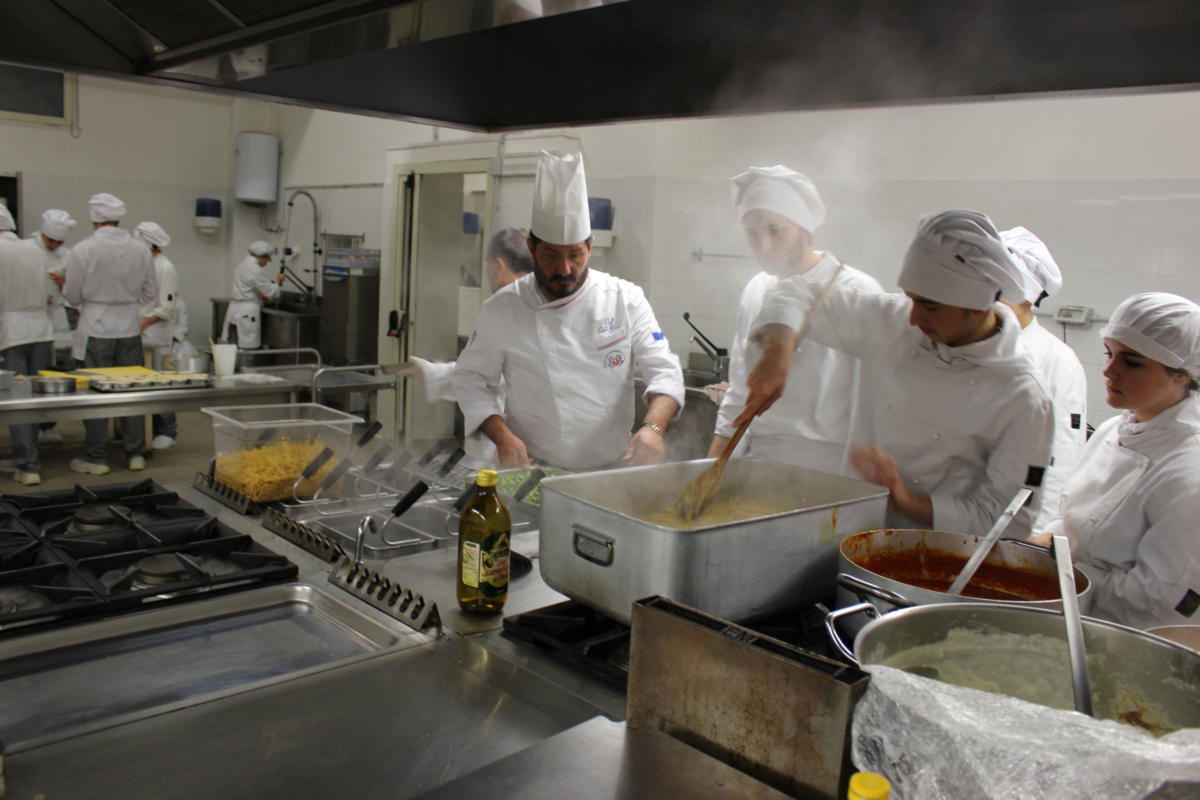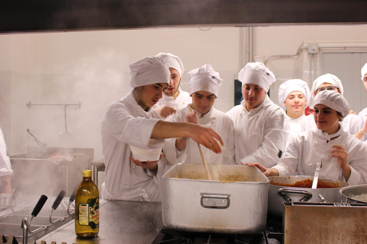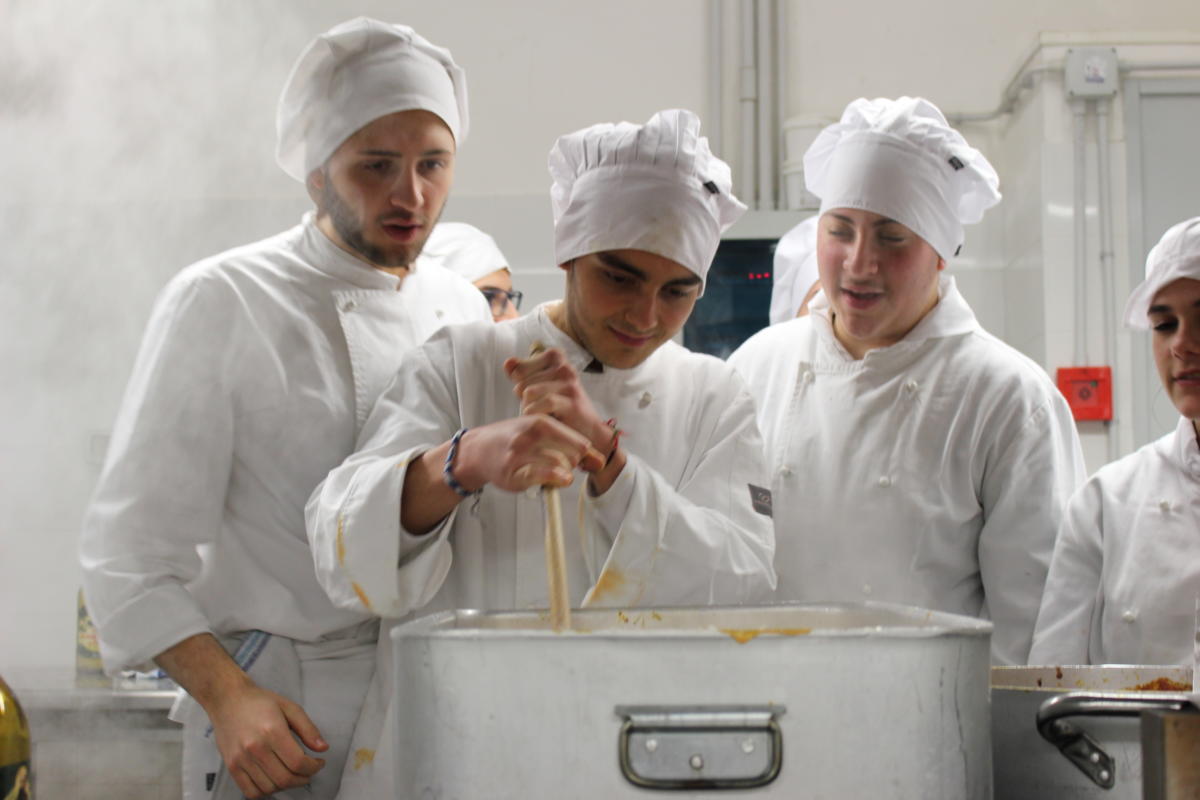 I bravissimi ragazzi della 3aB del Professionale Alberghiero indirizzo “Enogastronomia” al lavoro per la preparazione dei pasti destinati alla Mensa della Comunità che accoglie ogni giorno le persone meno fortunate.