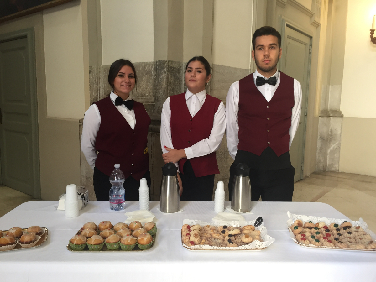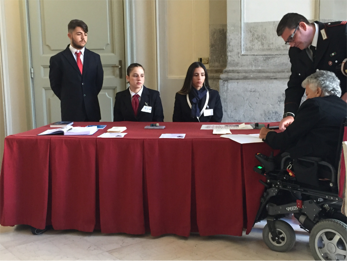 Gli alunni delle classi 4aA "Sala" e 5aA "Accoglienza Turistica" in Alternanza Scuola-Lavoro alla cerimonia di Commemorazione per "Salvo D'Acquisto", che si è tenuta il 13/10/2018 nella Sala Maria Cristina del Complesso Monumentale di Santa Chiara.