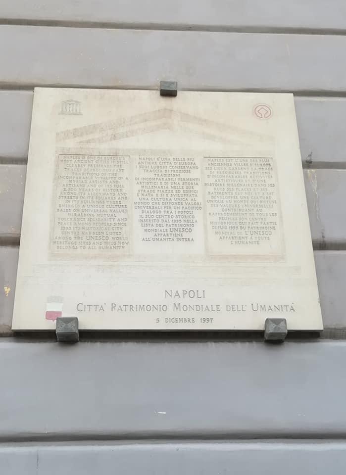 Stamattina siamo andati con i ragazzi in giro per la loro città. Come sempre avviene, mi hanno confermato che pur vivendoci non la conoscono. Abbiamo cominciato il giro partendo dalla targa UNESCO sulla facciata del Gesù nuovo, spiegando cosa significhi per noi essere Patrimonio dell'umanità.