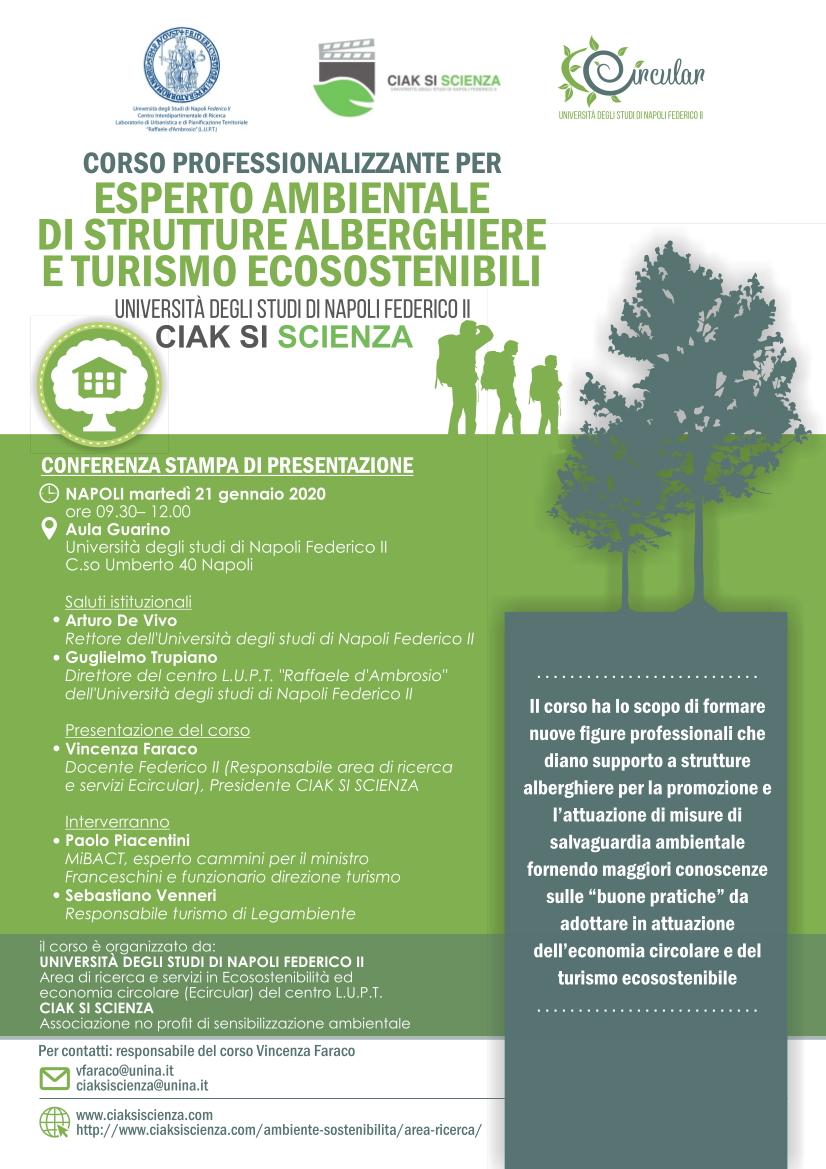 Il corso, rivolto a diplomati di scuole secondarie di secondo grado con formazione nel settore alberghiero e/o che lavorano in questo settore, ha la finalità di favorire e diffondere l'eco-turismo, di aiutare le strutture a realizzare risparmi nella gestione attraverso una minore produzione di rifiuti, minor consumo energetico e nell'uso efficiente delle risorse e di contribuire, con il ruolo di alta formazione connessa alla componente universitaria della rete, alla creazione dei nuovi profili necessari al mondo dell'imprenditoria green.
