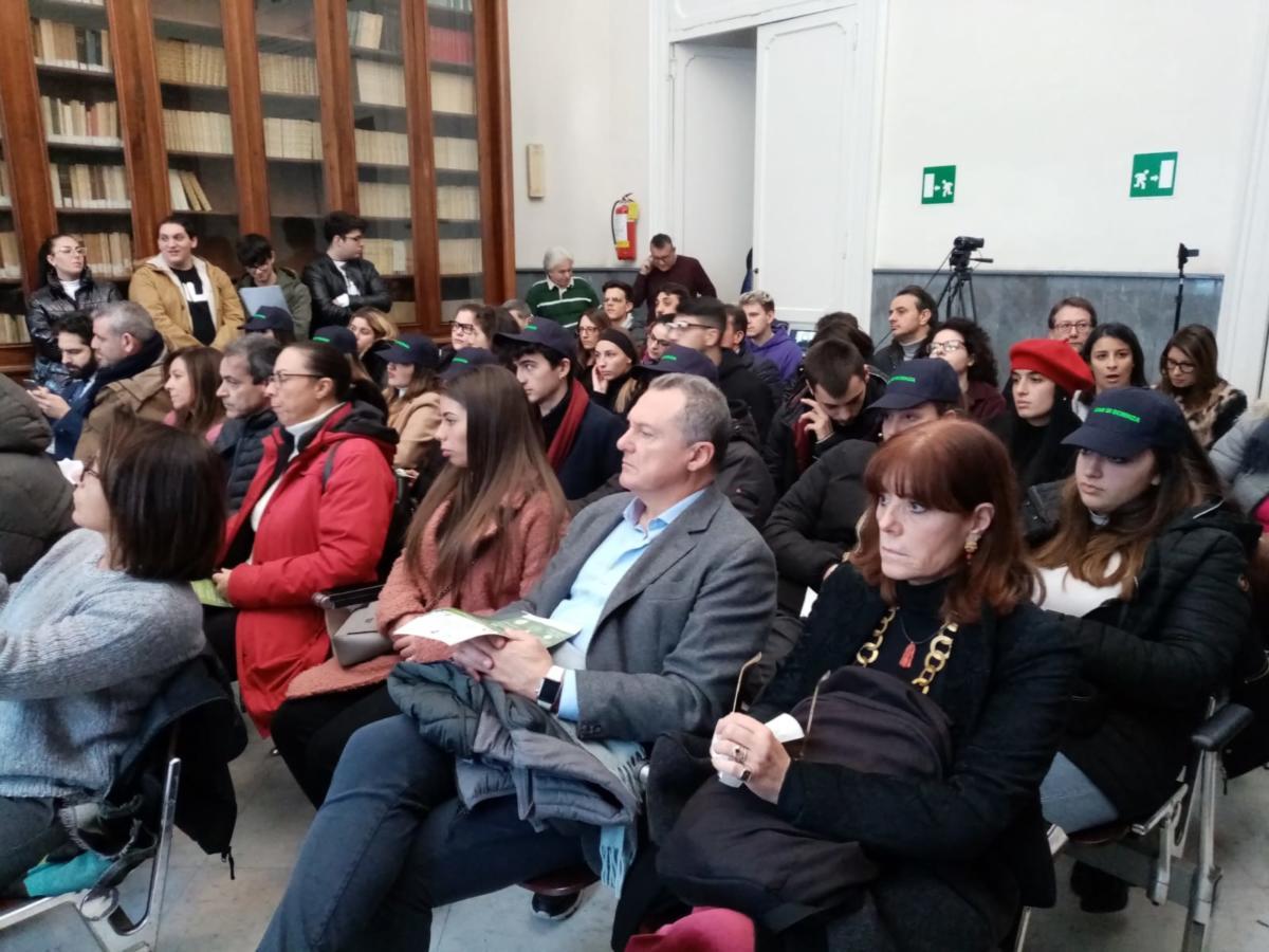 Gli alunni del Professionale Alberghiero, classi 5aA Enogastronomia e 5aA Accoglienza Turistica, alla conferenza di presentazione del Corso professionalizzante per esperto ambientale di strutture alberghiere e turismo ecosostenibili organizzato dall'Area di ricerca e servizi in Ecosostenibilità ed economia circolare (Ecircular) dell'Università degli studi di Napoli Federico II e dall'associazione no profit di sensibilizzazione ambientale Ciak si Scienza.