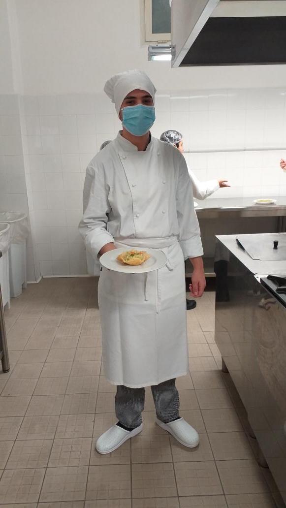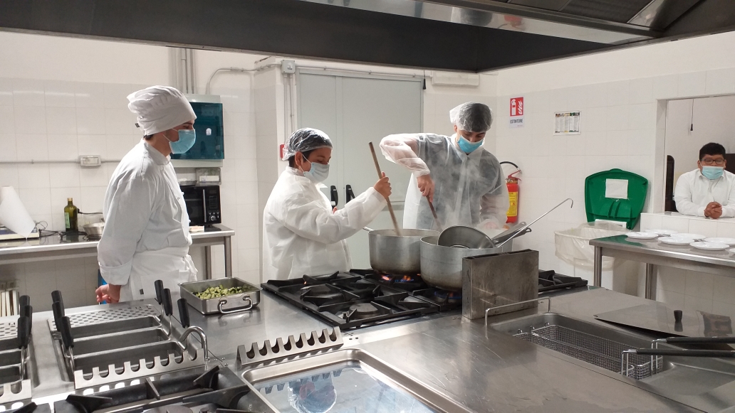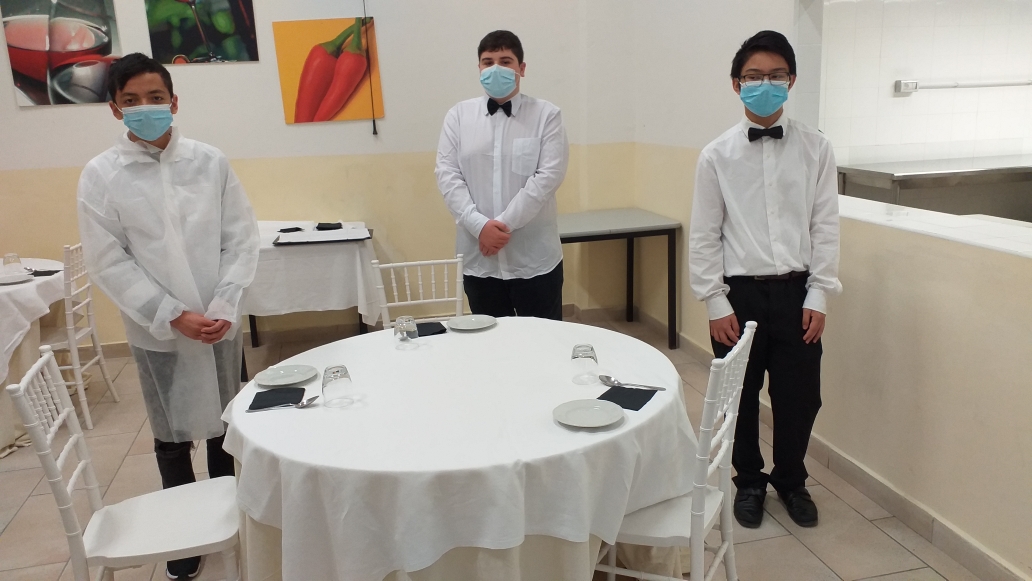 I ragazzi hanno appreso i segreti del taglio degli ortaggi con i quali hanno poi preparato un ottimo bel Minestrone in crosta di parmigiano, per l’esercitazione di enogastronomia, e si sono messi alla prova nella Mise en place per l’esercitazione di Sala.