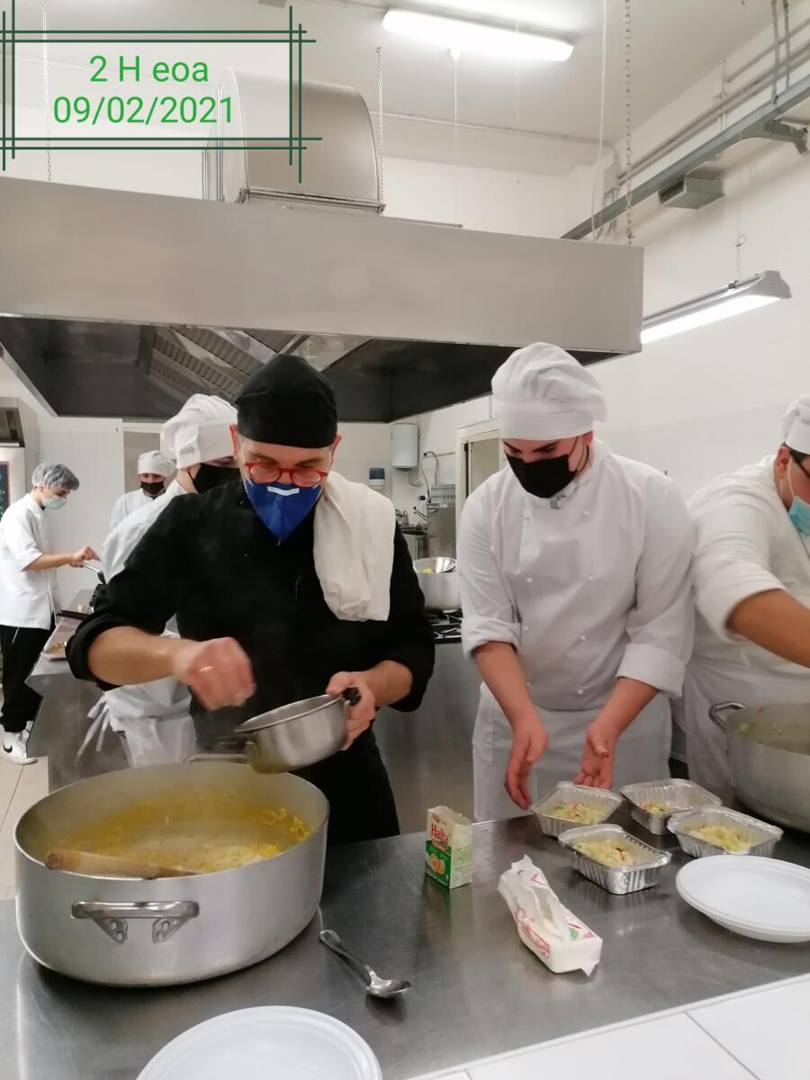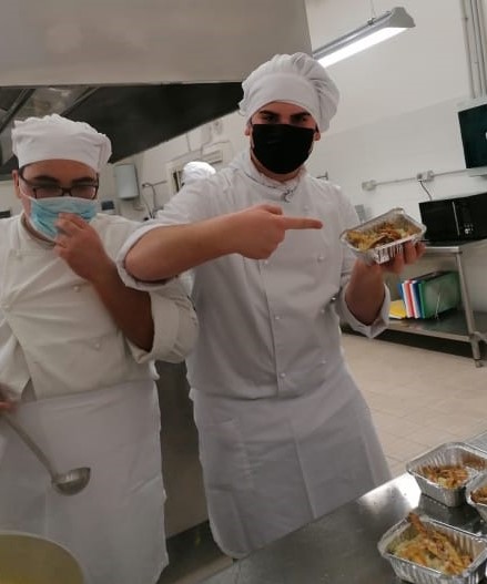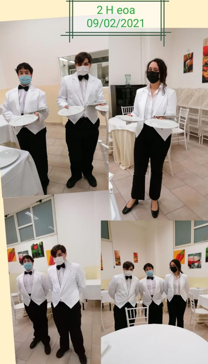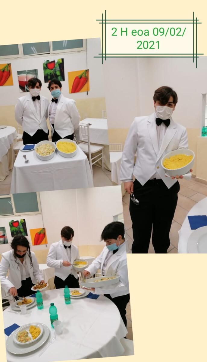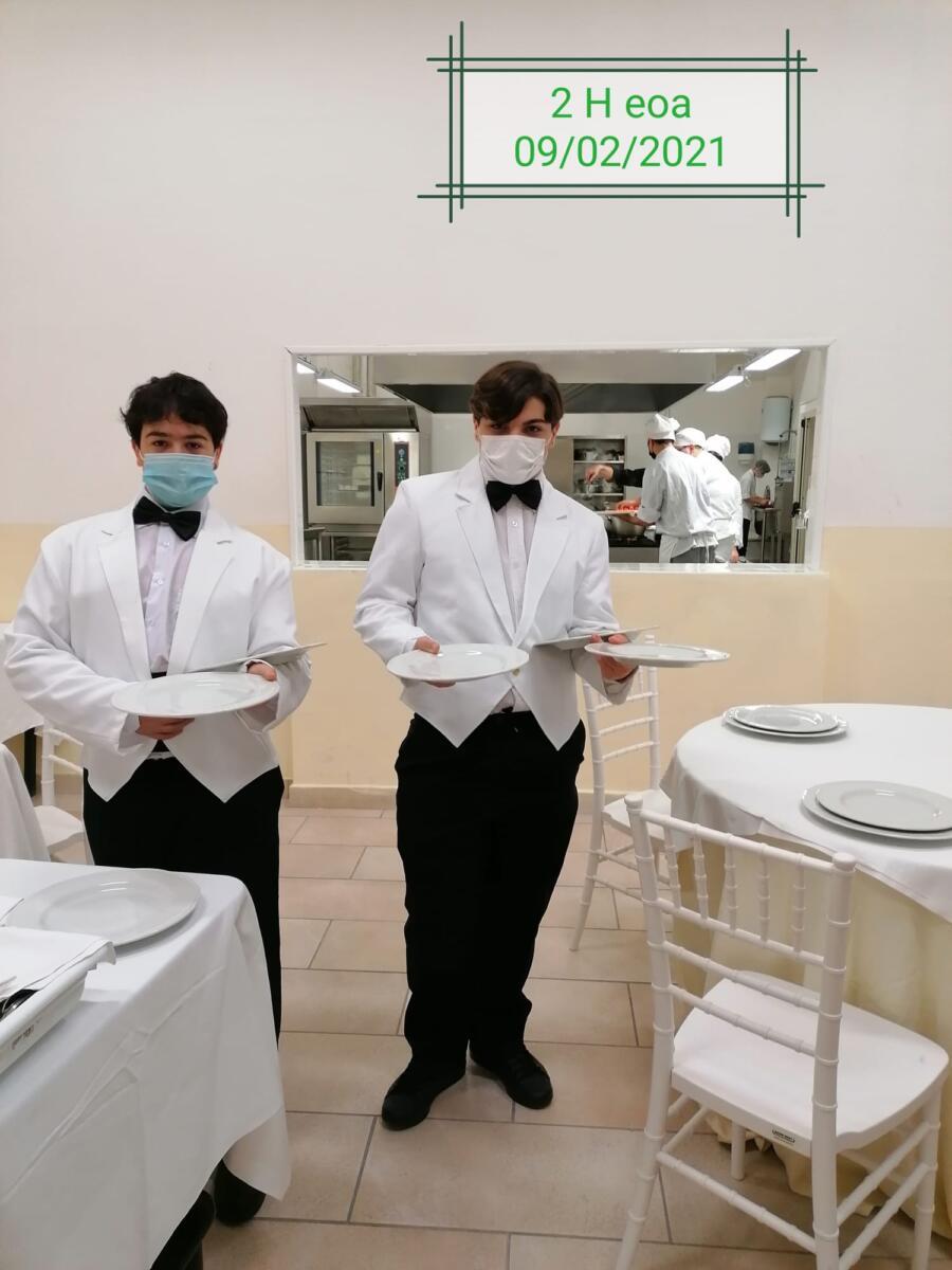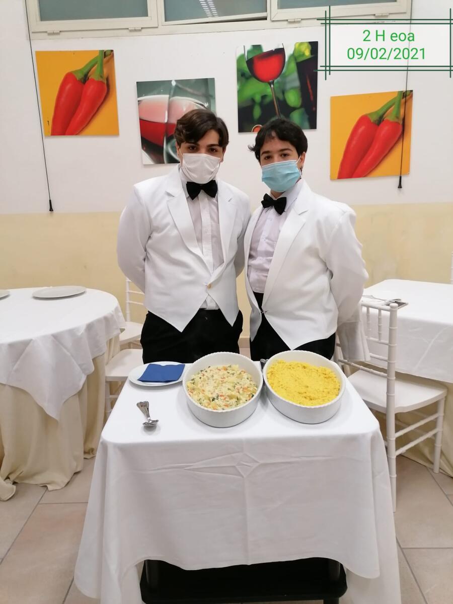 Gli alunni della classe 2H-EOA, dell’indirizzo Professionale “Enogastronomia e Ospitalità Alberghiera”, alle prese con le attività di laboratorio di Enogastronomia e Sala.