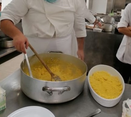 I ragazzi hanno messo in pratica con entusiasmo le lezioni teoriche svolte in DAD sul taglio degli ortaggi ed hanno preparato, con le verdure fresche, un bel Risotto di Stagione e, per confrontare ricette diverse, anche un Risotto alla Milanese.