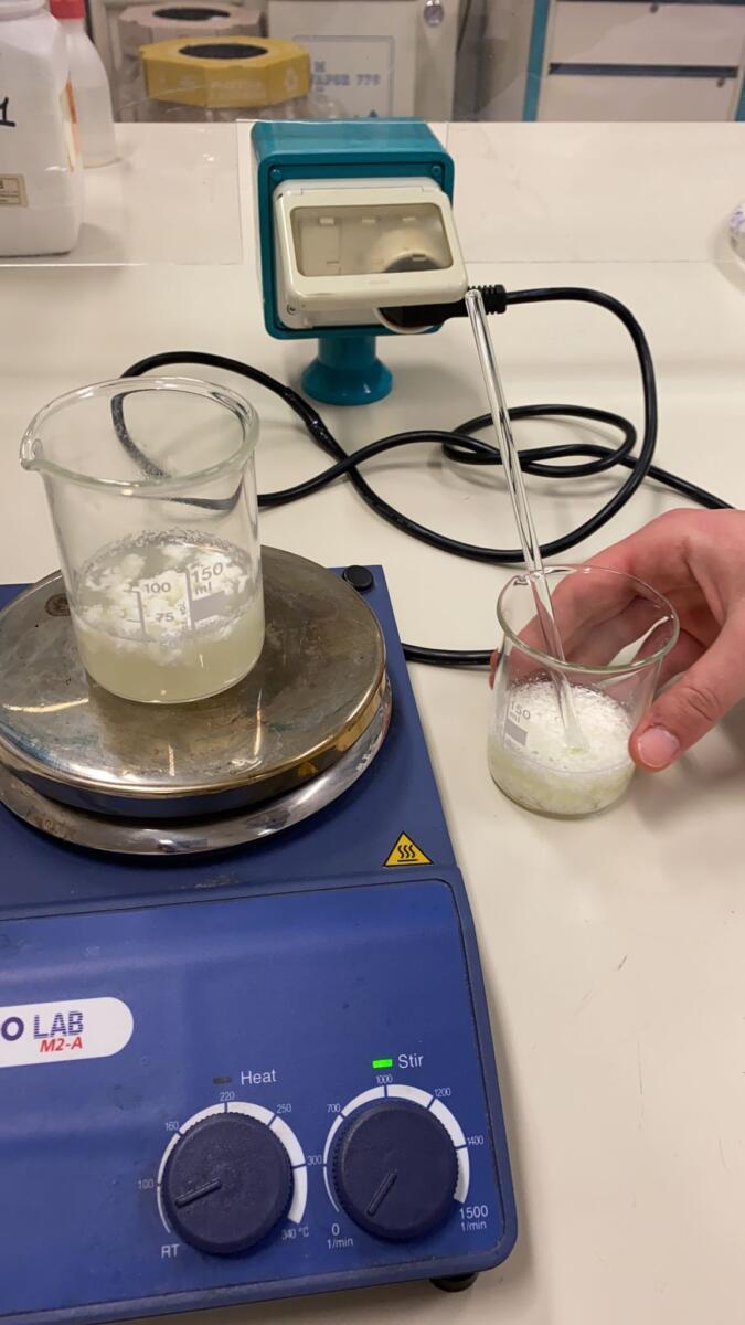 In particolare in laboratorio, con l’uso di acidi e processi termici hanno indotto il processo di precipitazione della caseina dal latte, che dà origine a un coagulo (cagliata) che è alla base della produzione di formaggi e latticini.