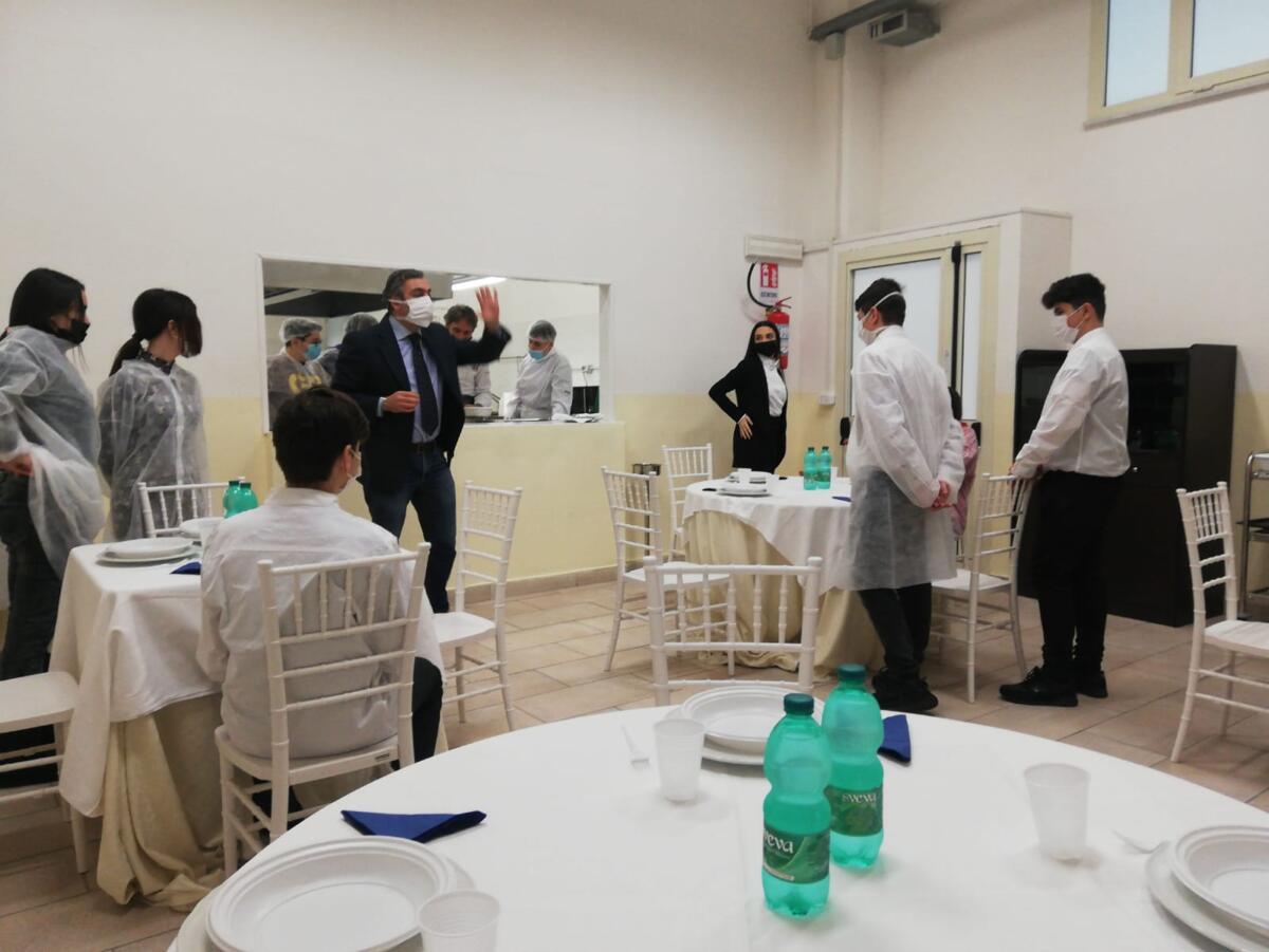 Gli alunni della classe 1A-EOA, dell’indirizzo Professionale “Enogastronomia e Ospitalità Alberghiera”, impegnati per la prima volta nelle attività di laboratorio di Enogastronomia e Sala.