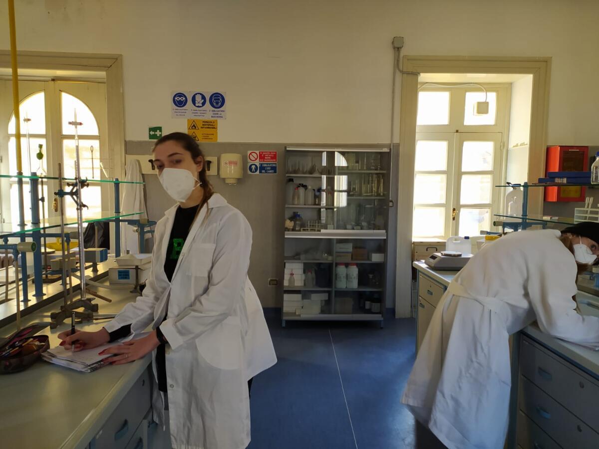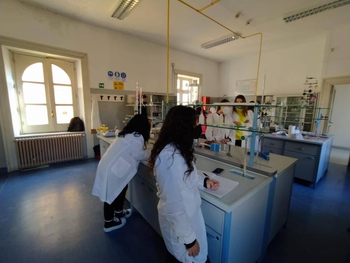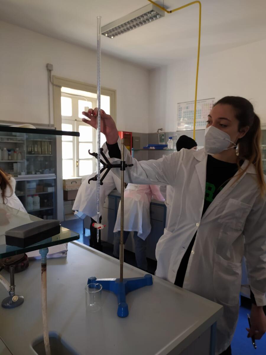 Gli alunni della classe 4aA-BTA dell’indirizzo Tecnico “Chimica, Materiali e Biotecnologie Ambientali” nel Laboratorio di Chimica del nostro Istituto impegnati nella Titolazione di una soluzione.