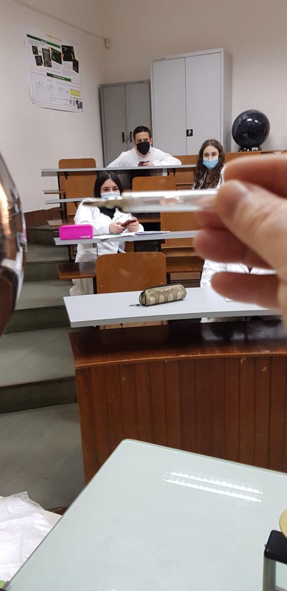 La seconda parte si é svolta nel Laboratorio di Chimica, dove hanno preparato una soluzione di cloruro di sodio a titolo noto e diluizione.