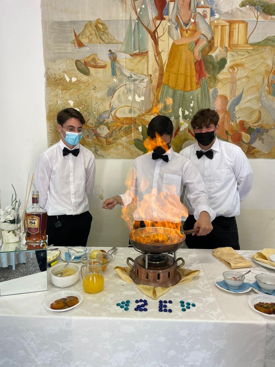 La cucina flambé (28/5/2021) Gli alunni della 2ªE-EOA dell’indirizzo Professionale Alberghiero alla prova con la cucina flambé durante le esercitazioni di sala.